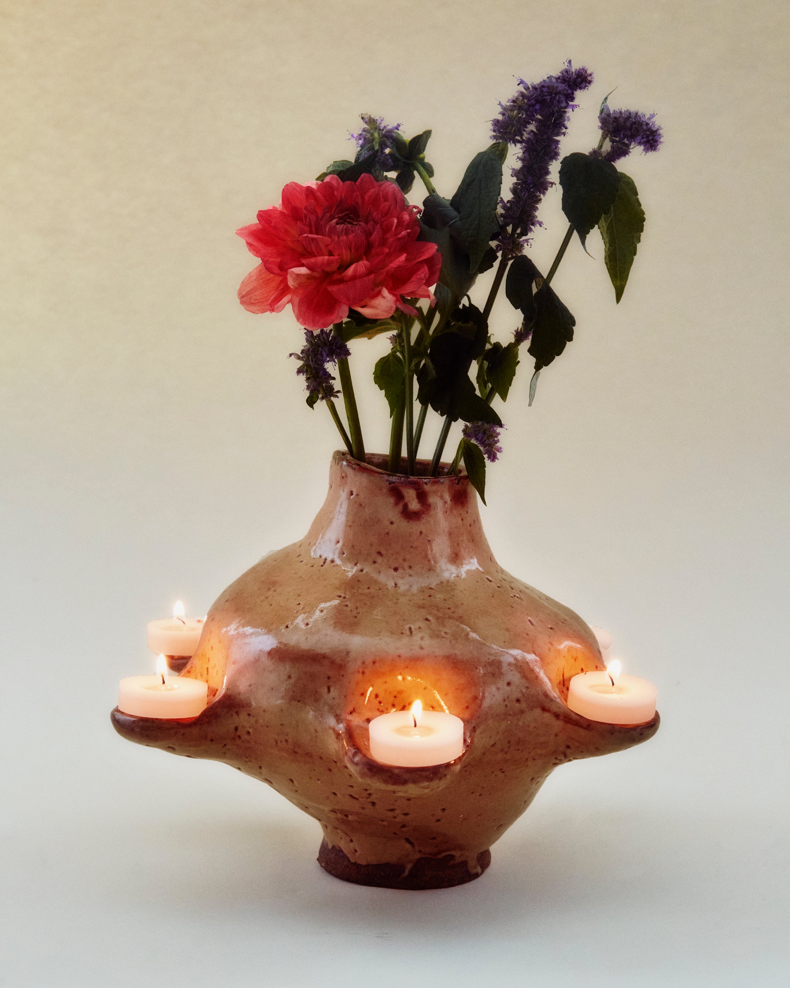Hand built eathenware ceramic sculpture designed to be a vessel for floral arrangements, candles and you're own personal alter
