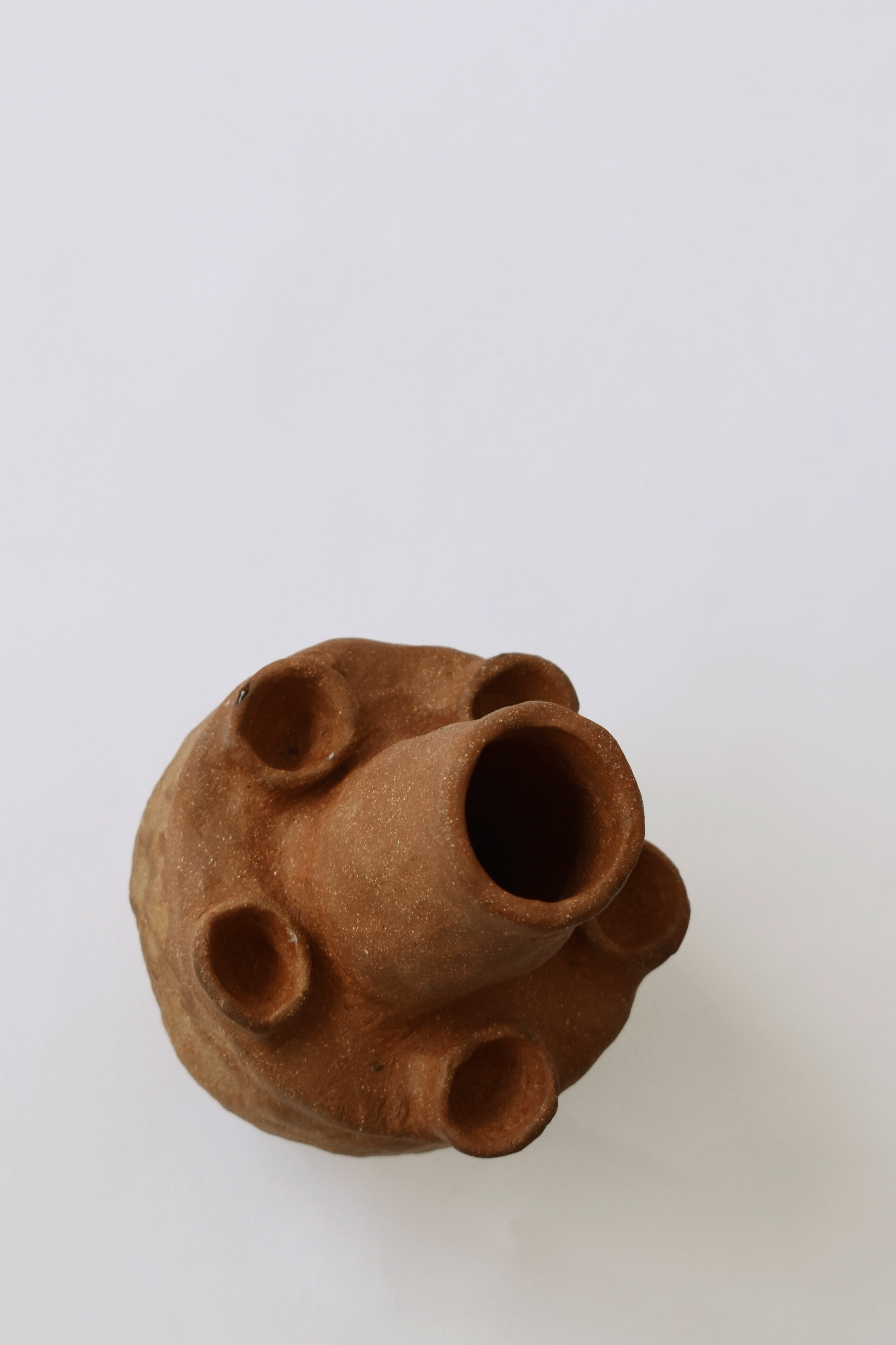 Hand built earthenware sculpture ceramic. This vessel is a versatile display sculpture,  with the capacity for five short taper candles, dried botanicals, or fresh florals. Its dual nature makes it equally suited for practical use or contemplative display.